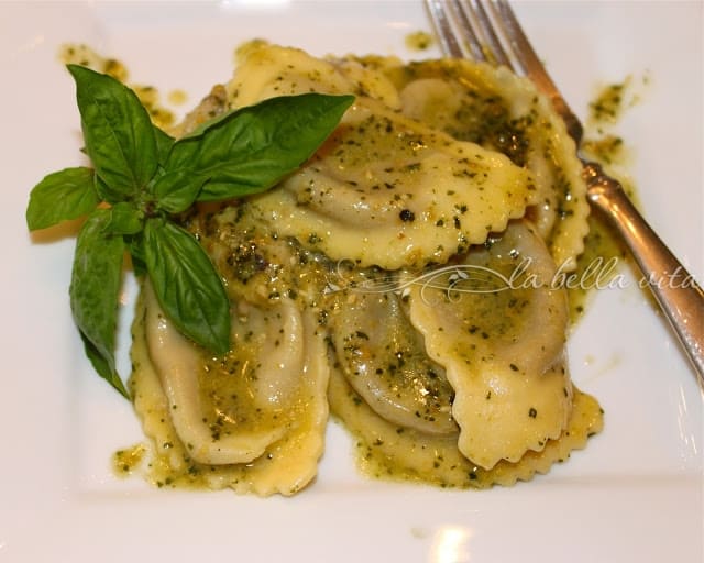 This looks like a wonderful dinner that I would be happy to eat any time. My basil grew so well this summer that I’ve already made a froze a large amount of pesto. I have to look for these delicious ravioli in my stores frozen food aisle.