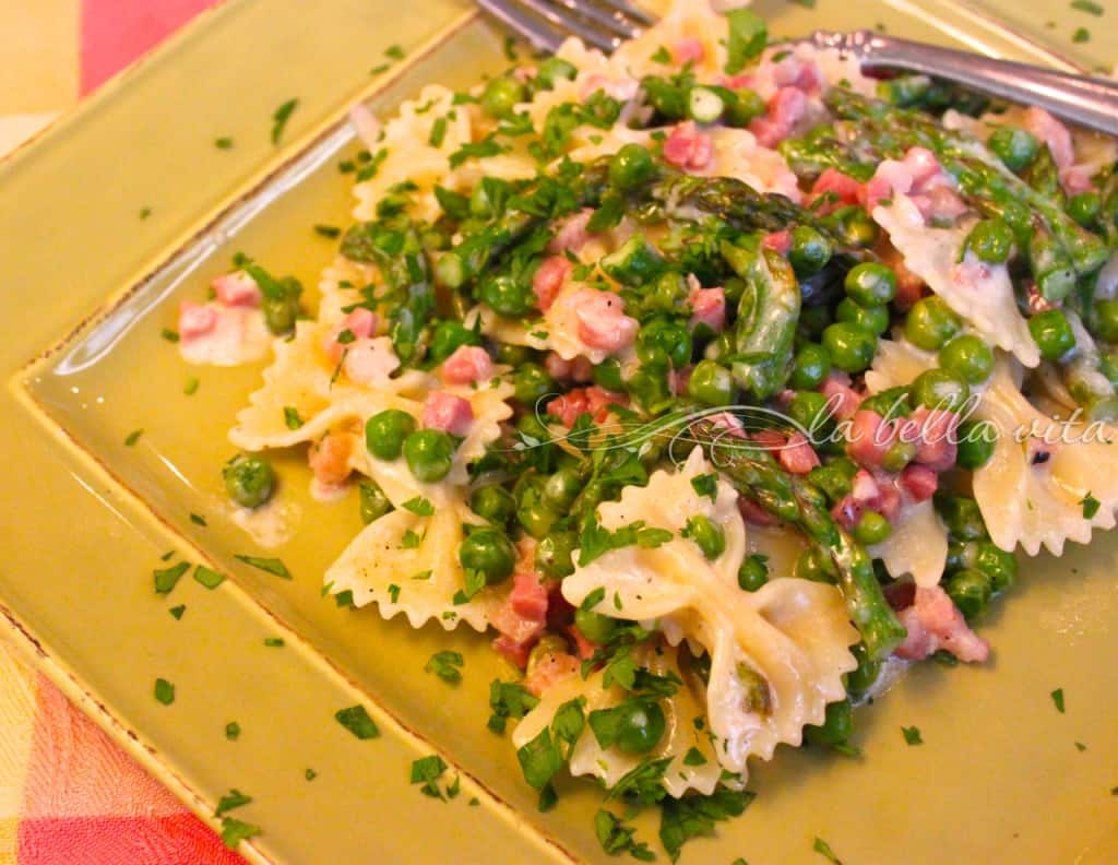 Farfalle with Asparagus, Peas and Pancetta in Cream Sauce