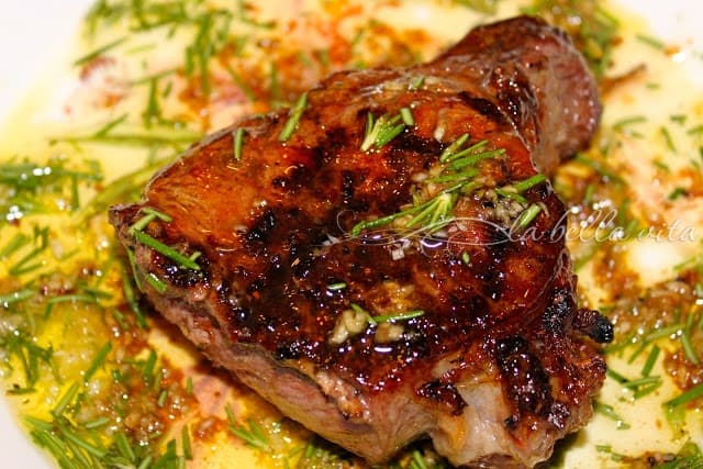 I’ve never had a real bisteccha Fiorentina, although I lived in Tuscany for five years. But the whole story and greatness of this steak is definitely in the quality of the meat used. Chianina cows are grown and fed in particular way following strict rules. So I really believe that, as well as the grilling method, is what makes it famous. Me and my husband still prefer tagliata more. Tagliata is prepared similarly, only this thick steak is sliced thinly after grilling and then served with arugula and shaved parmigiano