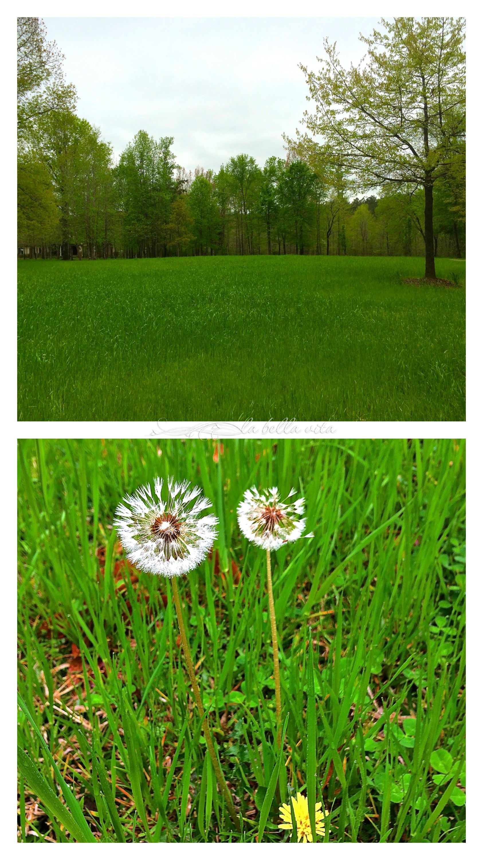 With all of the rain, we’ve not been able to cut the grass and the horses are really loving it! But even a few dandelion puffs have their own pretty display!
