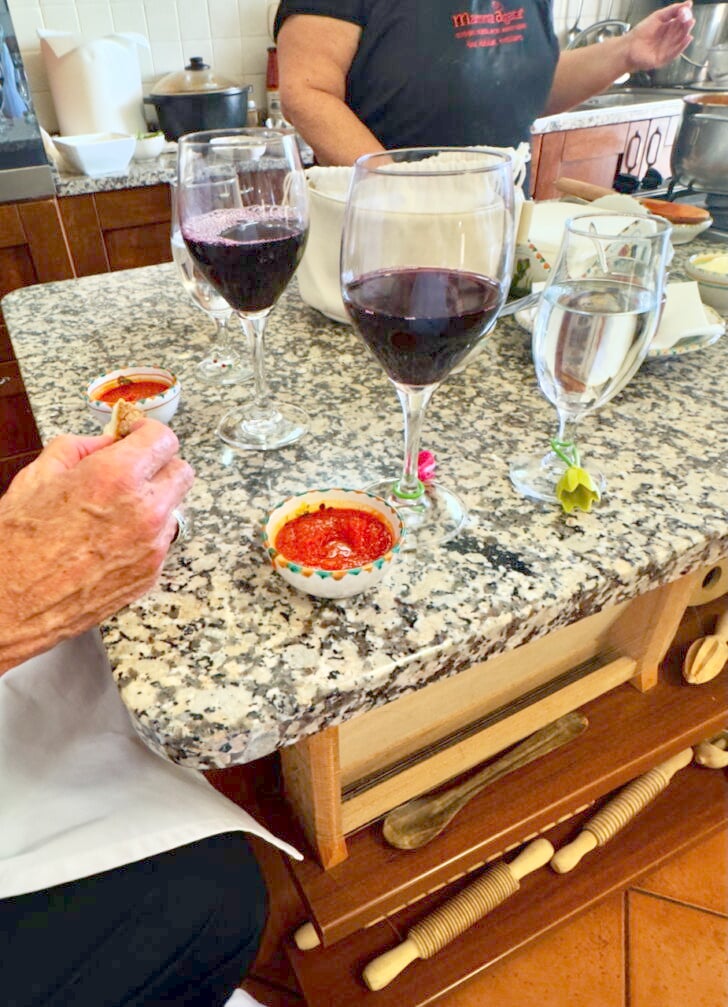 With endless glasses of wine in hand, we first tasted Chiara’s famous tomato sauce and understood why it sets her apart from other sauces . . . plus when she shared more of her ‘secrets’! This sauce and how she prepares it was truly a fantastic culinary experience! I know that from this point on, her instruction and advice will be the foundation of my own Italian cooking!