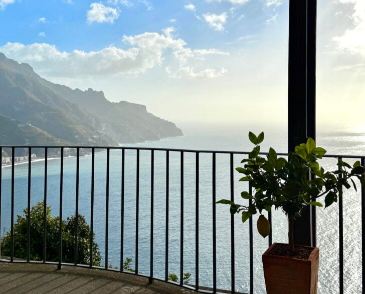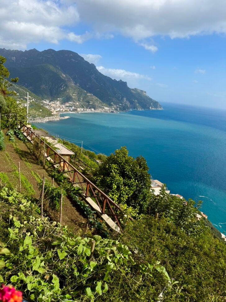 Picture-perfect views of the sea and cliffs from the balcony, where we enjoyed the dishes that we learned about and prepared. The rain clouds were beginning to form over the sea and the Gulf of Salerno.
