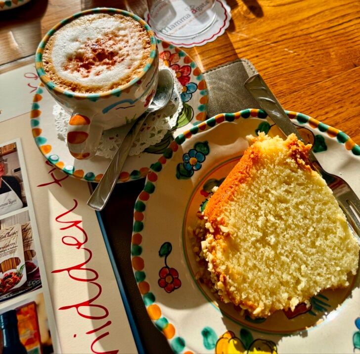 We were greeted and served a lovely latte’ and a big slice of Mama’s famous, moist lemon cake