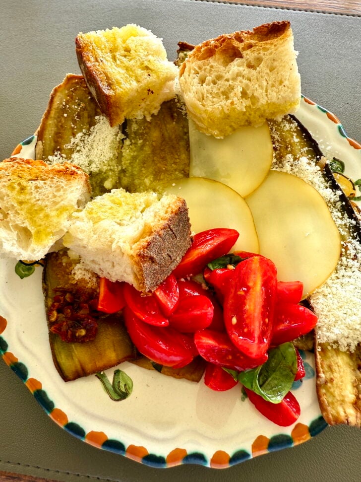 The class took place all day; so between each ‘course’ we enjoyed her freshly picked cherry tomatoes, fresh bread, and local cheese, and some eggplant and Parmigiano as an appetizer.