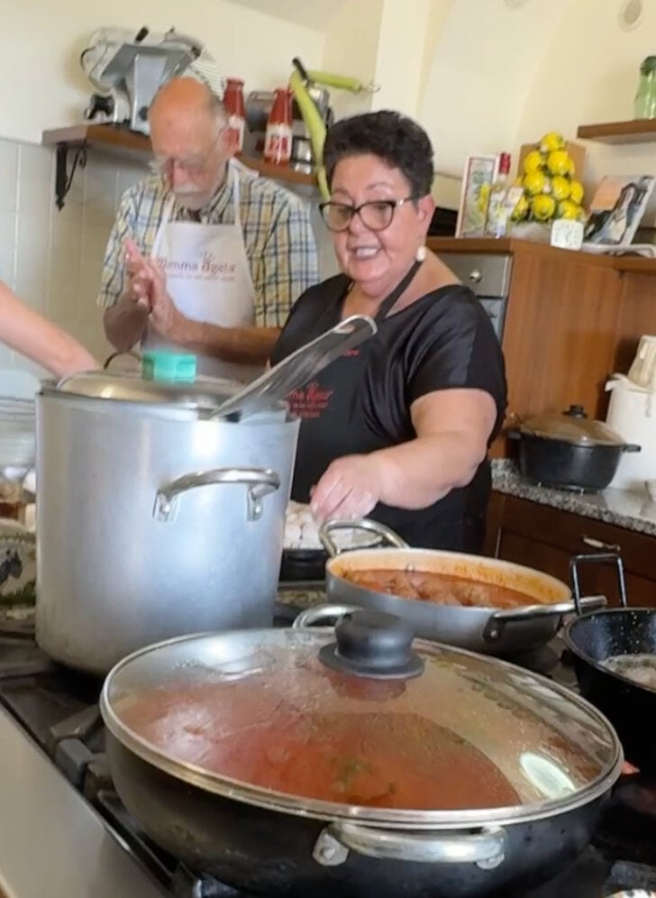 Here is the direct link to purchase Mamma Agata’s cookbook and/or enroll in her (in-person classes) from Italy (plus shipping, taxes, and tariffs not included here): https://www.mammaagata.com/